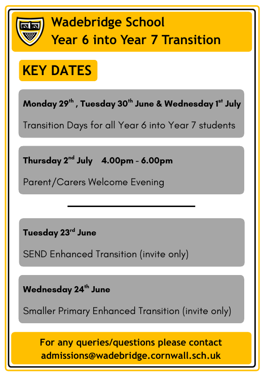We cannot wait to meet our all new students and families soon and welcome you to the Wadebridge School Community!